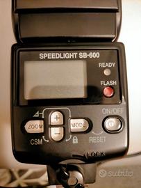 Flash Nikon SB 600 con custodia originale e porta flash a slitta, in ottime condizioni. È utilizzabile sia su fotocamere analogiche che digitali