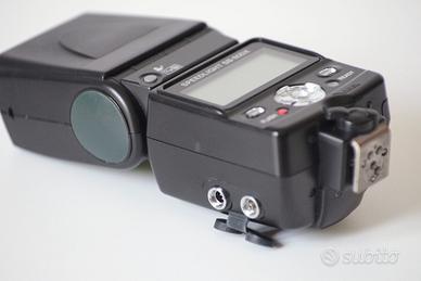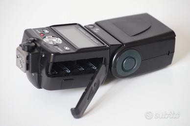 può funzionare in mod. M su tutte le camere con slitta flash, in alternativa con cavo hotshoe. Adoperato pochino, sempre rimasto in borsa. Display retroilluminato, collegamento remoto con cavi (non forniti), 2 predisposizioni battery pack aggiuntivi, modalità manuale e auto, zoom sincronizzato con ottica (ove compatibile), programmi lampeggi, bouncer e card presenti, sistema bloccaggio su slitta, scatola con manuali compresa e sacca originale, testa reclinabile e girevole, sensore luce integrato, collegamento con altri flash, e tantissime funzioni che potete trovare online. Il flash funziona perfettamente e sono disponibile a qualsiasi prova, estetica da negozio come si vede in foto. Un gioiellino che potete usare anche in studio tarando la potenza, oppure in esterna per fare 'davvero' luce! Consegna a mano presso mia sede, oppure spedizione corriere in tutta Italia, garantisco max cura imballaggio. Chiedete altre immagini se necessario... Venduto con formula 'esclusione di garanzia' come da normativa europea: comprate quello che vedete in foto!