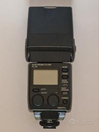 Perfettamente funzionante, è un flash dedicato ai sistemi Olympus con controllo elettronico del lampo TTL.