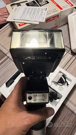Vendo Metz Mecablitz 45 CL‑4, uno dei flash professionali più affidabili e potenti della serie Metz. Set completo di accessori originali, tutto in ottime condizioni e perfettamente conservato. ✔ Contenuto del kit: • Flash Metz 45 CL‑4 • Impugnatura originale • Staffa di montaggio • Modulo Metz System SCA 300 • Cavo a spirale • Alimentatore/caricatore • Pacco batterie • Polistirolo sagomato originale • Scatola originale Metz • Documentazione ✔ Caratteristiche principali: • Numero guida 45 (ISO 100) • Testa orientabile Quadrolight® • Modalità AUTO / TTL / MAN / M/2 / M/4 • 6 diaframmi Telecomputer® • Compatibile con sistema SCA 300 • Funzionamento con batterie o pacco NC