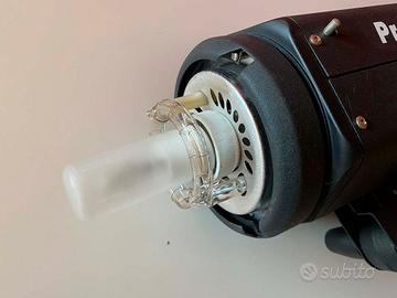 L'attacco di tipo S-Type "bowens" consente di utilizzare diversi accessori anche di terze parti: parabole di diversi diametri, snoot, barndoor, softbox, ottagoni, beauty dish, spot e tutti gli accessori sagomatori o diffusori chåe consentono di modificare la luce secondo le proprie esigenze.