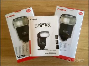 Vendo coppia di Flash Speedlite Canon 580EX, perfette condizioni meccaniche, qualche normale segno d’usura, scatola originale con corredo come da origine - flash, mini supporto, istruzioni.