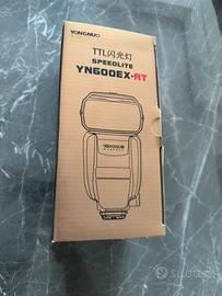 NUOVO MAI USATO CON SCATOLA E CUSTODIA Caratteristiche Principali: 1. **Compatibilità E-TTL / E-TTL II**: Completamente compatibile con il sistema TTL di Canon per il controllo automatico dell'esposizione. 2. **Funzionalità Wireless Master/Slave**: Supporta sia la trasmissione ottica che quella radio (RT), permettendo di funzionare come unità master o slave in configurazioni flash wireless. 3. **Numero Guida Elevato**: Il flash ha un numero guida di 60 (ISO 100, 200mm), il che indica una luce potente. 4. **Zoom della Testa del Flash**: La testa del flash può zoomare da 20mm a 200mm, adattandosi a diverse lunghezze focali dell'obiettivo. 5. **Modalità HSS (High-Speed Sync)**: Supporta la sincronizzazione ad alta velocità fino a 1/8000 di secondo. 6. **Display LCD**: Dotato di un display LCD per una facile visualizzazione delle impostazioni. 7. **Costruzione Robusta**: Costruito con materiali di alta qualità per durare a lungo e resistere all'uso frequente. 8. **Compatibilità con Accessori Canon**: Funziona bene con una vasta gamma di accessori Canon, inclusi trasmettitori e ricevitori radio. Specifiche Tecniche: - **Numero Guida**: 60 (ISO 100, 200mm) - **Copertura del Flash**: 20-200mm - **Modalità Flash**: E-TTL, Manuale, Multi - **Tempo di Ricarica**: Circa 3 secondi - **Angolo di Rotazione**: Testa del flash può ruotare da -7° a 90° in verticale e 0° a 360° in orizzontale - **Alimentazione**: 4 batterie AA