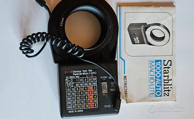 Flash Sunpak per fotografia macro con cavetto per collegarlo alla macchina fotografica con libretto istruzioni. Richiedo 25 euro. Inutilizzato quindi come nuovo funziona con batterie stilo.