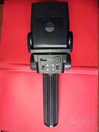 Mai usato perchè comprato assieme ad un nikon sb900. Il flash ha numero Guida 42 (metri a ISO 100) È robusto, offre modalità manuali e automatiche, e la testa inclinabile e girevole consente una buona flessibilità per l'illuminazione. È ideale per chi cerca un flash potente e versatile per fotocamere analogiche o digitali senza TTL.Il circuito interno è basato su un sistema thyristor, che consente di regolare automaticamente la quantità di luce emessa in base alla distanza del soggetto e all'apertura impostata.Il flash dispone di una connessione PC sync per il collegamento a fotocamere, ma non supporta il TTL (Through The Lens) o altre funzioni avanzate. È importante verificare la tensione di trigger del flash (generalmente tra 3,75 e 8,0 volt) per assicurarsi che sia compatibile con la fotocamera moderna.compresa slitta batterie.