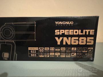 Vendo flash yongnuo yn685 piu trigger compatibili yongnuo yn622C piu luce a batteria ricaricabile dimmerabile sia in potenza che in tonalita. Possibilità di spedizione. Vendo anche separatamente.