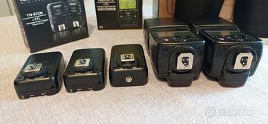 vendo per inutilizzo sistema yongnuo per Nikon in ottime condizioni e imballi originali composto da 2 flash YN568EX ttl+2 trigger YN622N i-ttl+1 trasmettitore YN622TX i-ttl. Regalo un diffusore per flash. Spedizione solo tramite tutto subito. prezzo non trattabile