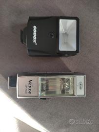 Flash digitale universale NG60 con funzione strobo, confezione e custodia morbida originali, 2 Trigger RF603n che lavorano come slave o direttamente sulla camera con Flash a distanza. (uno dei due ha lo sportello delle batterie difettoso in chiusura ma non ne pregiudica il funzionamento). In aggiunta diffusore nuovo, due Flash vintage (da utilizzare come slave off-camera)