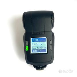Flash per Canon in ottimo stato. Potenza: Numero guida massimo di 52 con ISO 100. Zoom motorizzato: Copertura automatica da 24 a 105 mm, estendibile a 12 mm utilizzando il diffusore grandangolare integrato. Flessibilità: La parabola è orientabile sia in senso verticale che orizzontale per la gestione della luce riflessa. Funzioni Avanzate: Supporta la modalità TTL (specifica per il marchio della fotocamera), la modalità servo e dispone di una luce pilota per valutare l'effetto dell'illuminazione prima dello scatto. Aggiornamenti: Include un'interfaccia USB per l'aggiornamento gratuito del firmware.