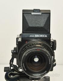 Macchina fotografica analogica di medio formato 4,5x6 usa pellicole 120/220 rispettivamente per 15 scatti / 30 scatti completamente manuale marca ZENZA BRONICA E T R S mirino a pozzetto dorso per pellicola 120 obiettivo ZANZANON f=75 ( consegna a mano)
