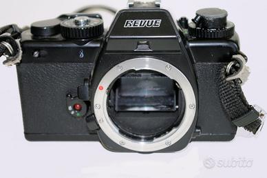 Fotocamera vintage REVUE AC3 a rullino, il top della gamma è automatica apriorità dei diaframmi e manuale, otturatore verticale controllato elettronicamente con tempi da 20s a 1/2000 in auto e da 2s a 1/2000 + B in man. Dorso intercambiabile e avanzamento con winder, corredata da ottica zoom Pentax 28/80 3,5/4,5 e da Flash Clever F605 NG30 con testa ruotabile e Thrystore automatico. Regalo rullino (scaduto) Ektachrome slide duplicating 36 exp. Le batterie sono presenti nella sola fotocamera. Tutto perfettamente funzionante e testato, vendo in blocco a soli 80€. + spedizione, no contrassegno.