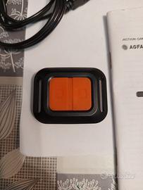 Fotocamera AgfaPhoto Top Wild Telecomando per attivazione a distanza. Guscio ermetico per subacqueo. Batteria aggiuntiva. Lente con piccolo segno.