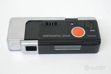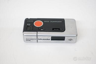 Rara fotocamera analogica, modello iconico per i collezionisti, marca AGFA modello AGFAMATIC 2008 TELE POCKET, funziona con rullino fotografico tipo 110. Ottica color AGNAR intercambiabile con 2 posizioni (wide/tele) selezionabile tramite comando su pannello superiore. La macchina fotografica si presenta in ottime condizioni estetiche e funzionali. In dotazione: - AGFAMATIC 2008 TELE POCKET - Custodia morbida originale Test effettuati - Otturatore: ok - Selezione manuale dell ottica: ok - avanzamento pellicola/trascinamento manuale : ok - apertura vano pellicola: ok - blocco in posizione chiusura: ok Non sono stati eseguiti altri tipi di test