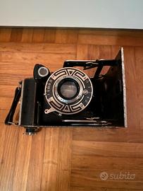 Macchina fotografica d’epoca verticale a soffietto pieghevole, periodo 1930-1940.