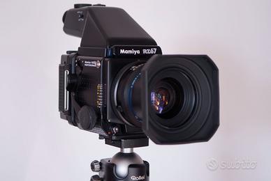 Macchina, ottiche ed accessori come nuovi. Nessun segno di usura, perfettamente funzionante. Con due Magazzini 120, Ottica 50mm F4.5 e 250mm F4.5, Pentaprisma e Pozzetto. In regalo lo Zaino e Cinque rullini in BW. Leggermente trattabile. Spedizione a carico dell'acquirente