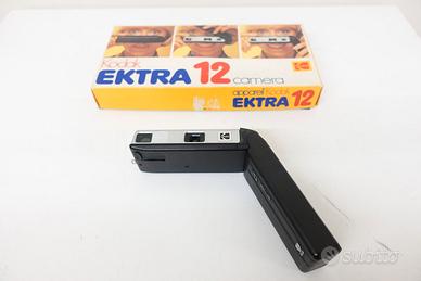 Fotocamera analogica pieghevole, funziona con rullino fotografico, marca Kodak modello EKTRA12 dotata di laccetto originale in maglia metallica ed imballo con scatola originale. Non presente segni di usura evidenti. L'impugnatura pieghevole rigida funge da custodia di protezione quando non in uso e da impugnatura quando utilizzata. In dotazione: - KODAK EKTRA 12 - laccetto originale in maglia metallica - imballo originale - scatola originale Test effettuati - Otturatore: ok - avanzamento pellicola/trascinamento manuale : ok - apertura vano pellicola: ok Non sono stati eseguiti altri tipi di test