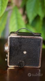 Fotocamera box Gevaert Gevabox 6X9, prodotta tra gli anni '50 e '60 in Belgio, in buone condizioni generali, con segni di ruggine visibili.