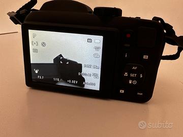 Fotocamera che mi è stata regalata ma non utilizzo per mancanza di tempo, scattate 10 foto. Come dalle foto è visibile che la fotocamera è praticamente nuova con scontrino e garanzia, in più do memory card da 32gb (capacità massima che supporta la fotocamera) di classe 10. Astenersi perditempo non ho fretta di vendere. Grazie