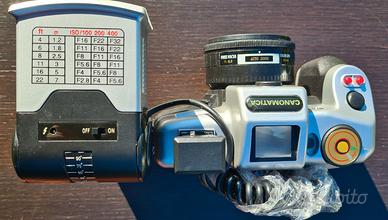 Fotocamera CANOMATICA, completa di ottica 50mm, Zoom automatico, Timer, Unità flash su slitta regolabile. Fornita di borsa con tracolla, originale. Buone condizioni generali. Adatta ad amanti del vintage o collezionisti. Disponibile alla spedizione, all'invio di altre foto e risposte alle vs. domande