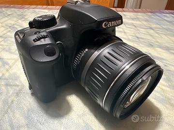 Canon EOS 1000D (conosciuta anche come Rebel XS), equipaggiata con un obiettivo kit EF-S 18-55mm, utilizzata per non piu di 20 scatti, datata ma pari a nuovo. Tenuta sempre al riparo in luogo asciutto , vendo con batteria e caricatore originale.