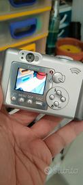 Fotocamera vintage ancora funzionante con scheda di memoria. Ha evidenti segni di usura e funziona con 4 batterie AAA. Display, scatto foto e trasferimento al PC funzionano, ma compare la segnalazione di batteria scarica. Probabilmente è la batteria a bottone da sostituire. Non avendo certezza lo vendo come oggetto guasto.