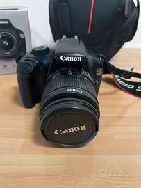 Vengo fotocamera Canon Eos 1100 D, la macchina e completamente nuova e stata utilizzata solamente 3 volte. Perfettamente funzionante senza alcun graffio , ed e adatta anche a principianti. È dotata solo di obiettivo originale e della custodia. Per altre foto contattarmi. Vendo perche non ho tempo di utilizzarla.