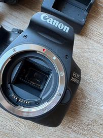Fotocamera Canon EOS 2000D utilizzata pochissimo come nuova. Obiettivo 18-55 mm. Completo di accessori: copriobiettivo, tracolla, batteria e caricabatteria originali.