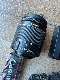 Fotocamera Eos 2000D come nuova, utilizzata pochissimo con obiettivo EFS 18-55 mm. Completa di accessori : copriobiettivo, tracolla, batteria e caricabatterie originali.