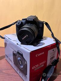 Vendo splendida fotocamera Canon eos 2000d EF-S 18-55 III, condizioni pari al nuovo, usata pochissimo. Il kit comprende corpo macchina + obiettivo 18-55, copri obiettivo, batteria con caricatore, custodia per trasporto, cavetto per i-phone o android. Vendo per inutilizzo.