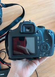 Fotocamera Canon Eos 4000D perfettamente funzionante completa di obiettivo originale Canon EFS 18-55mm più caricatore con batteria, scheda memoria. Non c'è la scatola originale ma una borsa da viaggio. Ritiro a mano da concordare su Roma o Castelli.