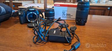 Fotocamera CANON EOS 450 D con due obiettivi (EFS 18-55 e FS 75-300) comprensiva di caricabatteria e batteria e custodia originale. Prezzo leggermente trattabile.