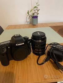 Vendesi fotocamera digitale Canon EOS 80D con accessori: corpo macchina, obiettivo Canon 28-105mm, Canon 50mm, carica batteria, borsa Canon, tappi, 2 paraluce, 1 scheda SD da 16 GB. Tutto in ottimo stato e perfettamente funzionante.