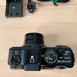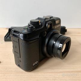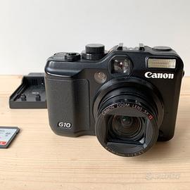 Vendo fotocamera digitale Canon Powershot G10 con sensore CCD da 1/1.7” da 14.7 megapixel, zoom ottico 5x, apertura F2.8-4.5 e mirino ottico. La fotocamera è in ottime condizioni, venduta con caricabatterie compatibile, batteria originale e scheda di memoria. Prezzo trattabile