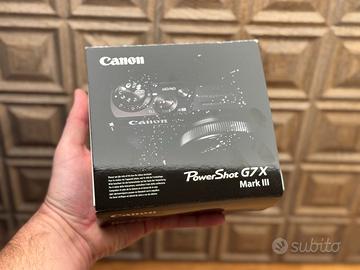 Fotocamera Canon PowerShot G7x Mark III con scatola originale, batteria e caricabatterie. In condizioni perfette, funziona perfettamente. Unico proprietario, del 2020