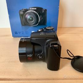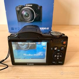 Vendo fotocamera Canon PowerShot SX 500 IS con sensore CCD da 16 megapixel, zoom ottico 30x, registrazione video in HD e stabilizzazione ottica. La fotocamera è in ottime condizioni, presenta qualche segno di normale usura su scocca e schermo ma funziona in modo ottimale. Venduta con scatola originale, caricabatterie originale e batteria compatibile. Prezzo trattabile