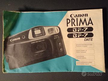 Fotocamera Canon Prima BF-7, con custodia originale, certificato di registrazione Canon , mai adoperata. Custodia ovviamente leggermente rovinata causa età del pezzo. Non avendola mai adoperata, non so nemmeno se è funzionante.