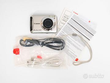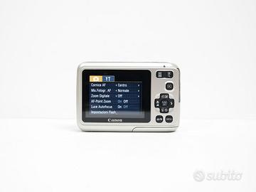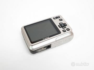 Fotocamera compatta digitale Canon PowerShot A 495, con nessun problema funzionale o danno estetico. Obiettivo senza segni/righe e senza polvere interna. Piccolissimi segni di normale uso sulla scocca e display, non influenti nell’utilizzo o in fotografia (vedi foto per maggiori dettagli sull’estetica del prodotto). Si alimenta con 2 classiche batterie stilo AA (da acquistare separatamente). Comprensiva di confezione originale con: Cinturino da polso, Cavo AUX, Cavo Dati, Fogli Illustrativi. Compatta ideale per la vita di ogni giorno col classico look vintage anni 2000 Tutte le foto dell’annuncio sono scattate da me: il prodotto in vendita è quello che vedi in foto. Caratteristiche: Camera autofocus punta e scatta, obiettivo equivalente 37 - 122 mm. Sensore 1/2.3” CCD da 10 MP con zoom 3.3x Registrazione video: 640 x 480, 30 fps Velocità di scatto: 15” - 1/2000s ISO: 80 - 1600 Dimensioni: 94 x 62 x 32 mm IXUS G7X mark II III Peso: 126g senza batteria