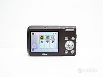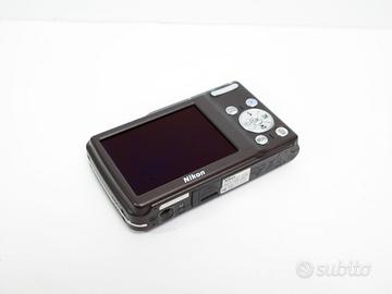 Fotocamera digicam compatta digitale Nikon Coolpix S210, con nessun problema funzionale o danno estetico. Obiettivo senza segni/righe e senza polvere interna. Qualche segno sulla scocca e display, non influenti nell’utilizzo o in fotografia (vedi foto per maggiori dettagli sull’estetica del prodotto). Colore: marrone. Comprensiva di confezione originale con: Batteria originale, Caricabatterie, Cavo di carica, Cavo dati usb, Cavo AUX, Cinturino da polso, Manuali, CD, Custodia Nikon originale. Il prodotto è stato testato e la prova del suo funzionamento è disponibile. Tutte le foto dell’annuncio sono scattate da me: il prodotto in vendita è quello che vedi in foto. PS.: manca la levetta che blocca e sblocca la batteria, ciò non compromette l’utilizzo del prodotto perché la batteria va in blocco automatico alla chiusura dello sportellino. Caratteristiche: Camera autofocus punta e scatta, obiettivo equivalente 38 - 114 mm Sensore 1/2.5” CCD da 8 MP con zoom ottico 3x Registrazione video 640 x 480p a 30 fps Velocità otturatore: 4” - 1/1500 ISO: 64 - 2000 Dimensioni: 90 x 55 x 18 mm IXUS Powershot G7x mark II III Peso canon: 100g senza batteria