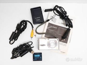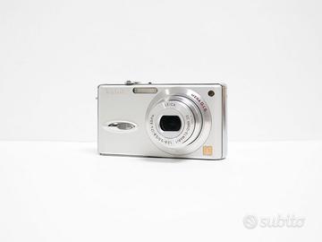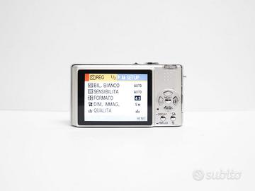Fotocamera compatta digitale Panasonic LUMIX DMC-FX8, con nessun problema funzionale o danno estetico. Obiettivo senza segni/righe e senza polvere interna. Qualche piccolissimo segno di normale uso sulla scocca e display, non influenti nell’utilizzo o in fotografia (vedi foto per maggiori dettagli sull’estetica del prodotto). Comprensiva di confezione originale con: Batteria compatibile nuova, mai utilizzata, Caricabatterie, Cavo di carica, Cavo AUX Cavo dati, Cinturino da polso, Manuali. Il prodotto è stato testato e la prova del suo funzionamento è disponibile. Tutte le foto dell’annuncio sono scattate da me: il prodotto in vendita è quello che vedi in foto. Classica compatta dal look vintage anni 2000. Caratteristiche: Camera autofocus punta e scatta, obiettivo equivalente 35 - 105 mm Sensore 1/2.5” CCD da 5 MP con zoom ottico 3x Registrazione video 640×480 a 30 fps Velocità otturatore: 8s - 1/2000 ISO: 80 - 400 Dimensioni: 94 x 50 x 24 mm IXUS Powershot G7x mark II III 285 HS Peso canon: 116g con batteria