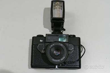 Dotata di flash Philips mod. 518B applicabile e custodia rigida in plastica con tracolla. Funzionante sia il meccanismo della fotocamera che il flash.
