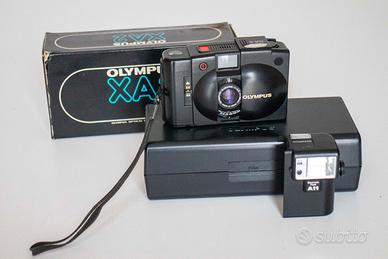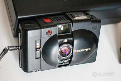 Formato pellicola 35mm (24x36). Otturatore elettronico centrale. Obiettivo Zuiko D 35 mm F3,5. Messa a fuoco con indicatori a 3 zone. Esposizione automatica con tempi da 2 sec. A 1/750 di sec. Gamma sensibilità 25-800 ASA. Pulsante di scatto elettromagnetico. Autoscatto elettronico con ritardo di 12 sec. A LED intermittente e segnale acustico. Flash automatico dedicato e staccabile. Alimentazione 2 batterie da 1,5 V LR44 o equivalenti. Dimensioni LxHxP 102x65x40. Peso 200 gr.