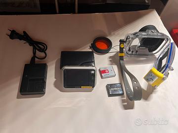 Video/Fotocamera compatta SONY, con display panoramico, foto e videi in alta risoluzione + Custodia Subacquea Sony dedicata -50 m, filtro, + 2 batterie, custodia in pelle Sony. Perfetta come nuova nessun problema.
