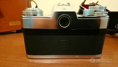 In ottime condizioni. Funzionante vendo macchina fotografica Contarex con obiettivo Carl Zeiss. Completa di custodia originale, dorso datario, treppiede e borsa accessori.