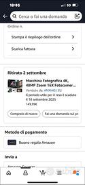 La fotocamera è stata acquistata a settembre 2025 ed è in condizioni pari al nuovo, usata pochissimo e perfettamente funzionante in ogni sua parte. Non presenta graffi sulle lenti o sullo schermo.