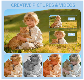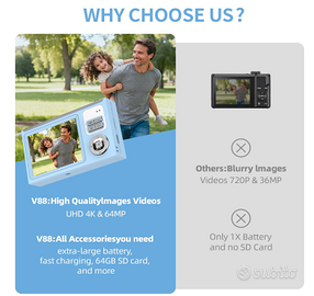 Scopri la fotocamera digitale 64MP 4K, progettata per offrire immagini e video di alta qualità in un formato compatto e leggero, ideale per bambini e ragazzi. Dotata di un display IPS da 2,8 pollici, permette una visione chiara e vivida delle foto e dei video, mentre lo zoom digitale 16X consente di catturare ogni dettaglio anche da lontano.