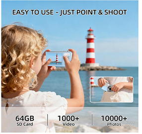 Grazie alla funzione anti-shake, le immagini risultano stabili e nitide anche in movimento. Inclusa una scheda SD da 64GB, perfetta per archiviare migliaia di scatti. Facile da usare e dal design colorato e portatile, è la scelta ideale come primo dispositivo fotografico o come regalo educativo e divertente per bambini, studenti o giovani appassionati di fotografia.