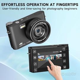 Fotocamera digitale compatta da 64 MP 5K con autofocus, schermo LCD da 3 pollici e WiFi, ideale per YouTube