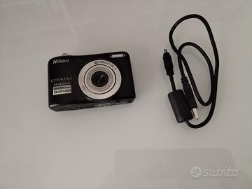 fotocamera digitale compatta Nikon Coolpix L 25 colore nero obiettivo Nikkor con zoom ottico grandangolare 5x sensore CCD da 10,1 megapixel display LCD da 3,0 pollici (7,5 cm) supporta la registrazione video alimentazione: batterie AA standard completa e perfettamente funzionante cavetto priva di scatola e certificati No spedizione. solo vendita diretta in loco