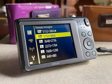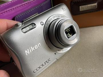 Fotocamera Digitale Compatta Nikon Coolpix S3700 S-3700 20 mpx Wi-Fi Wide Zoom Macchina in buone/ottime condizioni estetiche. Testata e perfettamente funzionante, presenta piccoli segni d'uso abbastanza normali, qualche graffietto, qualche piccolo dentino.. Le macchina funziona perfettamente. Ho provato tutte le modalità, registra sia nella memoria interna sia nella scheda SD. Tutti i tasti funzionano bene e lo zoom si estende e si ritira senza incertezze. Il monitor è brillante, la lente è pulita. La vendita comprende - la fotocamera - la batteria originale Nikon - il cavo originale - il caricabatterie originale Nikon - laccetto da polso - una custodia originale Nikon rosa/viola - una custodia originale Nikon marrone chiaro/scuro Nessuna scheda di memoria