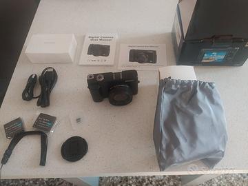 Fotocamera Digitale compatta 4K 48MP con schermo ribaltabile da 3 pollici a 180°, auto focus, zoom digitale 16X e anti-shake. Video 4K Hd e foto 48MP ad alta risoluzione e modalità di scatto avanzate. Sono incluse 2 batterie ricaricabili e una scheda di memoria da 32GB per iniziare subito.